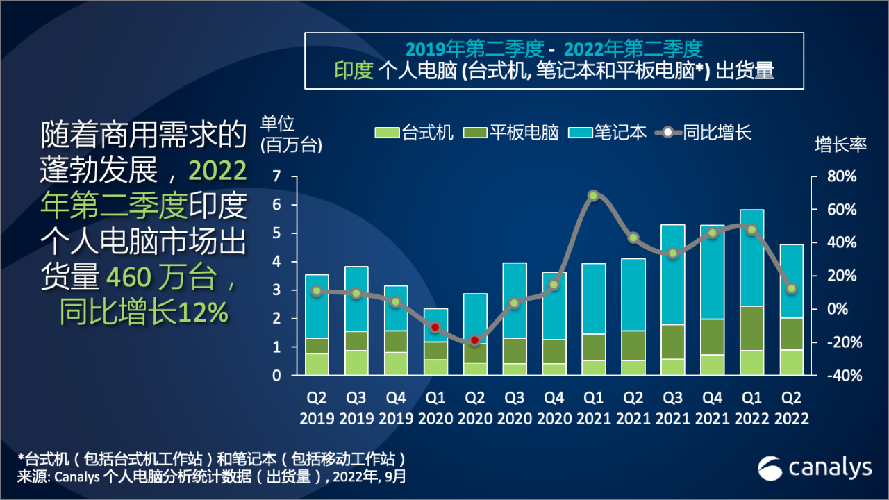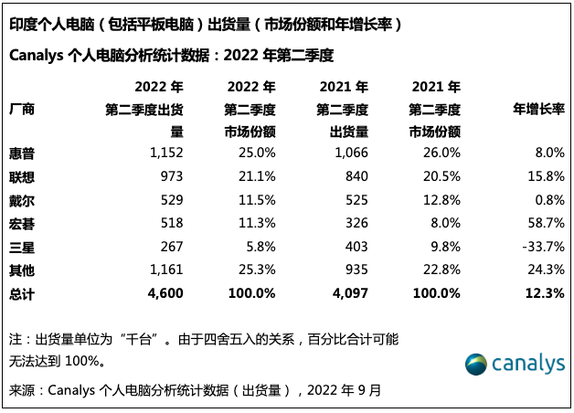 Canalys:2022 年第二季度印度个人电脑和平板电脑市场增长 12%