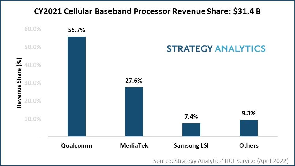 Strategy Analytics:2021 年高通以超过 8 亿出货量主导全球基带芯片市场