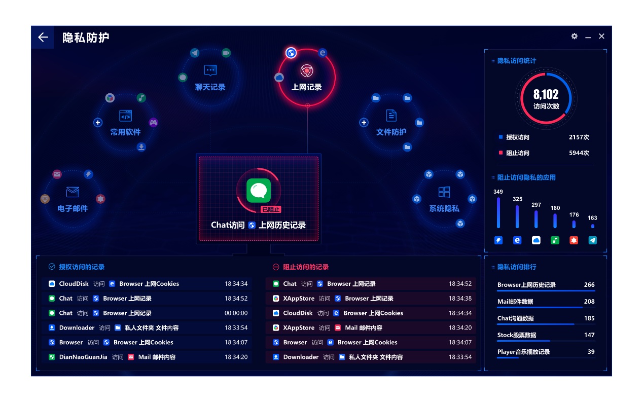 为补偿当时对PC端隐私维护的缺失,奇安信安全防护上线了隐私维护特别方式,当用户对工作、学习等重要文件,以及上网历史记载、谈天软件记载、电子邮件等个人重要信息设置成为特别维护方式时,软件将制止其他运用软件拜访,从而进步维护强度,避免隐私走漏。