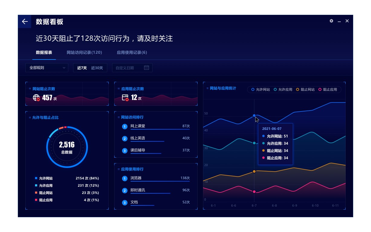 据介绍,在奇安信安全防护青少年方式下,用户能够在指定时刻段,约束网站拜访及运用运用,包含约束游戏时刻、屏蔽歹意网站、设置网站、运用白名单以及长途管控上网行为等多项功用。协助广阔家长为孩子供给一个健康活跃的上网环境。