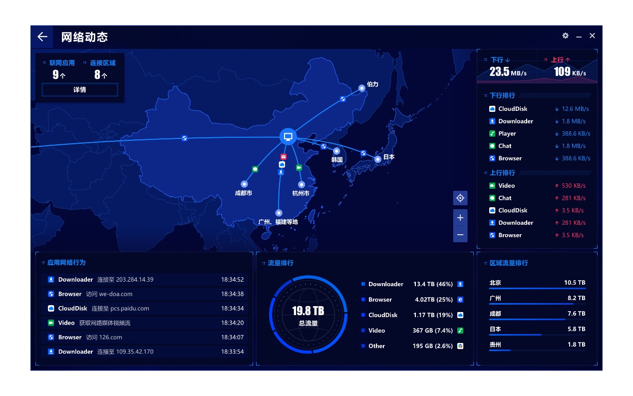 一起,奇安信安全防护还能将各类运用的运转状况,以图表可视化的方式出现给用户,协助用户实时把握电脑的安全态势。