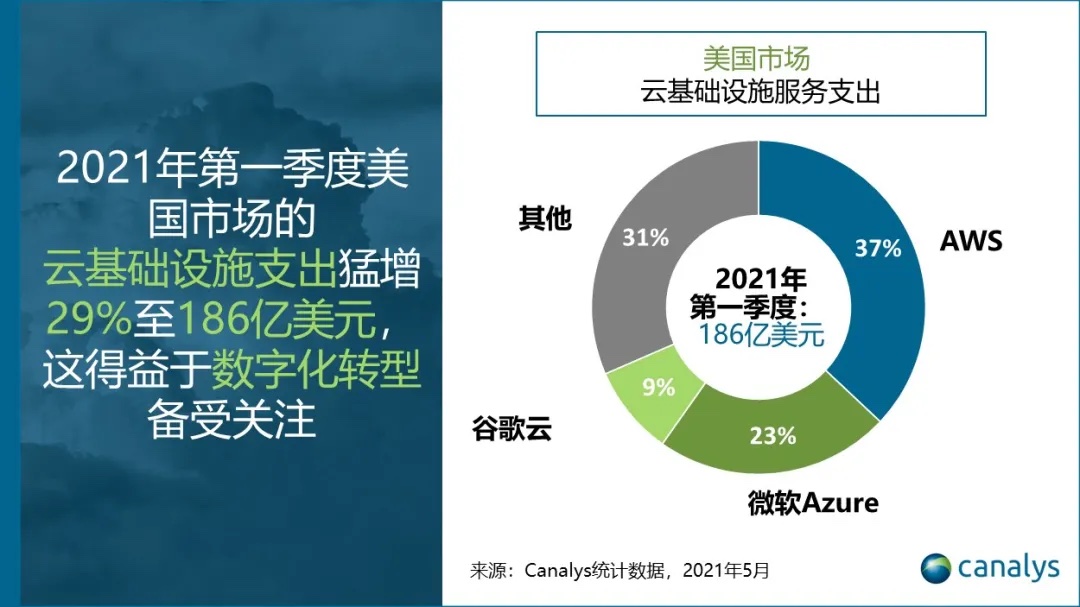 Canalys:2021 Q1 美国云基础设施支出猛增 29% 至 186 亿美元