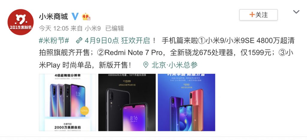 官微也宣告了小米8 SE等机型将于4月9日零点降价200元。
