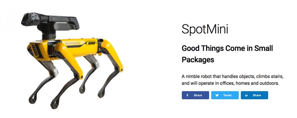 波士顿动力公司四足机器人 SpotMini 将于明年上市